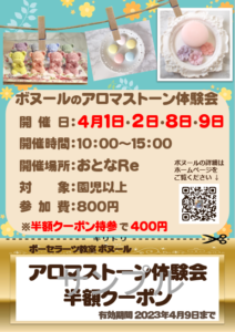 アロマストーンの体験会:4月1日、2日、8日、9日
