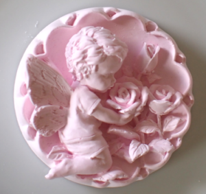 バラを愛でる天使(丸型)を使って、アロマストーン水のお色を赤色にすると、こんな感じに仕上がりますよ。