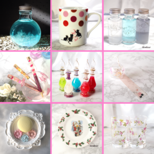 ボヌールの出張教室のレッスンメニューは、ポーセラーツ、ハーバリウム、アロマストーン、ストームグラスの4種類。